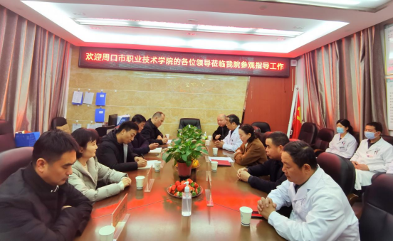 崔東玲介紹了醫(yī)院的基本情況、發(fā)展歷程、業(yè)務(wù)特色、發(fā)展前景,并對(duì)院校合作前景寄予高度期待。護(hù)理學(xué)院院長(zhǎng)付曉東介紹了周口職業(yè)技術(shù)學(xué)院基本情況和醫(yī)學(xué)專業(yè)發(fā)展?fàn)顩r,劉敏介紹了醫(yī)學(xué)專業(yè)學(xué)生實(shí)習(xí)情況并高度評(píng)價(jià)醫(yī)院的良好發(fā)展勢(shì)頭,苑建偉對(duì)促進(jìn)雙方院校合作,搭建學(xué)生實(shí)習(xí)就業(yè)平臺(tái)提出了構(gòu)思與謀劃。
