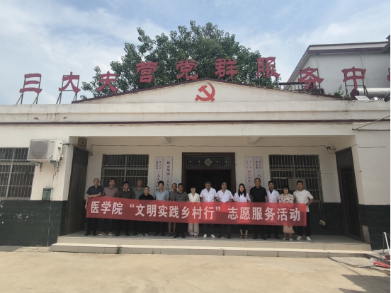 為進(jìn)一步弘揚(yáng)時代新風(fēng),倡導(dǎo)文明風(fēng)尚,提高鄉(xiāng)村居民健康素養(yǎng),6月26日上午,醫(yī)學(xué)院組織師生志愿者到沈丘縣新安集鎮(zhèn)三大夫營村開展“文明實踐鄉(xiāng)村行”志愿服務(wù)活動暨健康科普進(jìn)鄉(xiāng)村活動。醫(yī)學(xué)院黨總支書記苑建偉,院長劉敏,副院長郭瑞、王向華等參加活動。