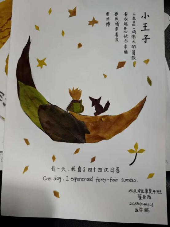 活動(dòng)現(xiàn)場,同學(xué)們以落葉為素材,充分發(fā)揮創(chuàng)意,將片片秋葉化作一幅幅精美的藝術(shù)作品。在創(chuàng)作過程中,大家相互交流構(gòu)思,分享制作技巧,現(xiàn)場洋溢著溫馨愉悅的氛圍。這些作品或展現(xiàn)校園秋景,或表達(dá)美好祝愿,展現(xiàn)了同學(xué)們豐富的想象力和細(xì)膩的審美情趣。