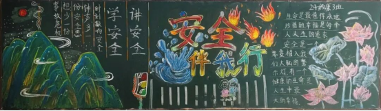 在本次活動中,同學(xué)們積極參與,他們把自己對安全的理解生動形象地展現(xiàn)在黑板報中,本次黑板報創(chuàng)作的內(nèi)容涵蓋了交通安全、防火防盜、網(wǎng)絡(luò)安全、食品衛(wèi)生安全等多個方面。一幅幅色彩艷麗的黑板報,構(gòu)成了班級中宣傳安全知識的一道亮麗風(fēng)景。